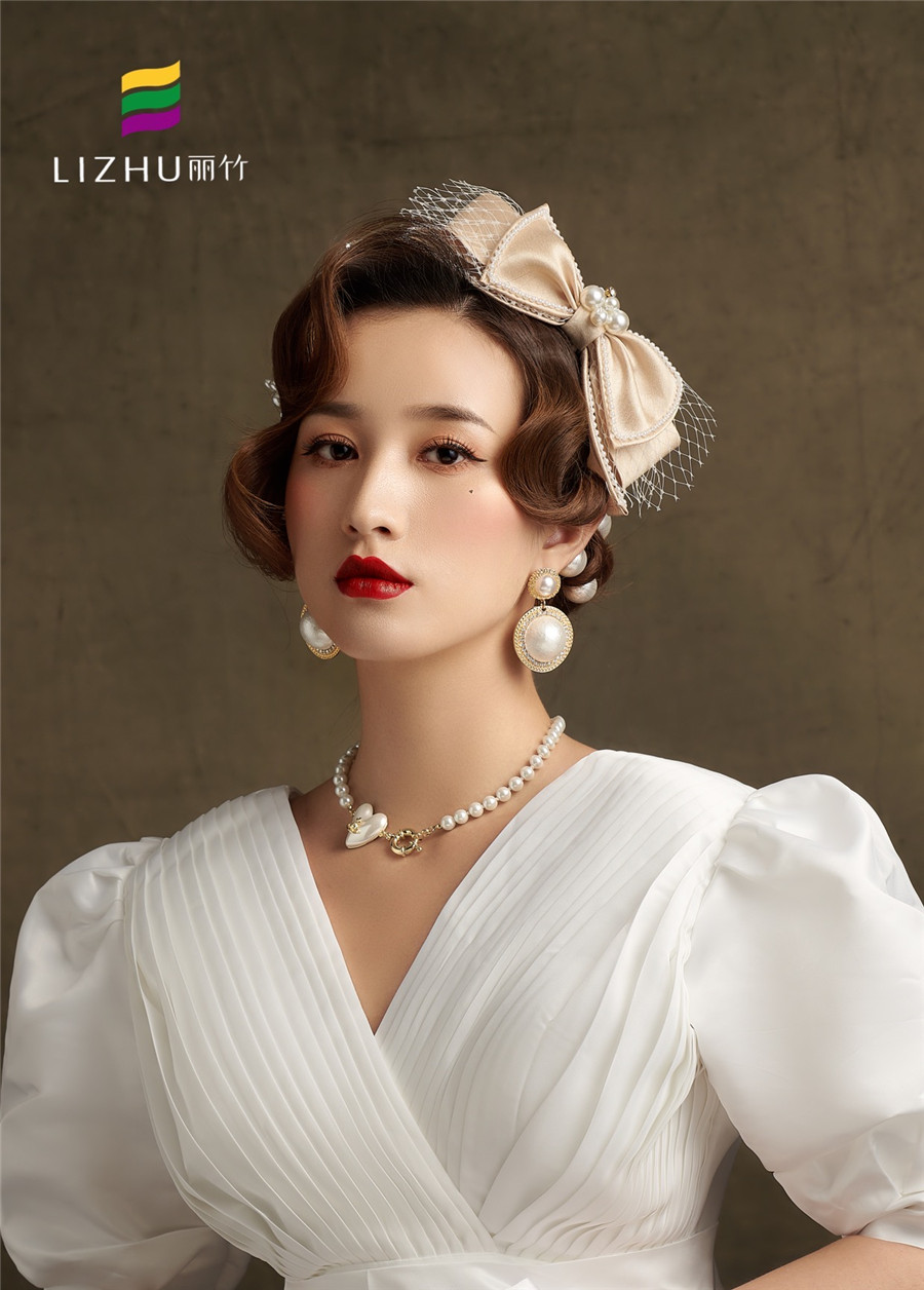廣西化妝培訓(xùn)學(xué)校(麗竹化妝培訓(xùn)學(xué)校)作品---輕復(fù)古系列妝容造型:時(shí)尚優(yōu)雅的復(fù)古盤(pán)發(fā),佩戴香檳蝴蝶結(jié)頭飾點(diǎn)綴,畫(huà)上大氣動(dòng)人麗人妝,穿上簡(jiǎn)潔緞面氣質(zhì)婚紗,展現(xiàn)出既純潔又優(yōu)雅的獨(dú)有氣質(zhì)。